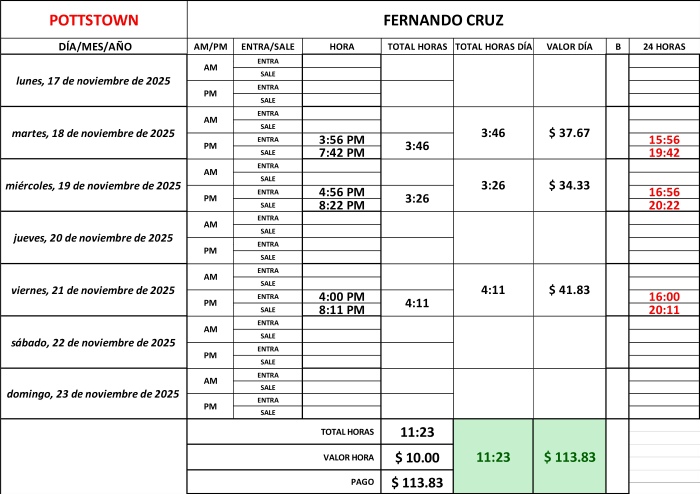 PAYROLL POTTSTOWN AMOS VICENTE ASTRID SACACH CARLOS OROZCO DERWIN PEREZ FERNANDO CRUZ JOSUE VASQUEZ LEONEL ALARCON MYNOR GARCIA VICTOR GARCIA ZANDRA MUNZON ZENAIDA PEREZ RESUMEN